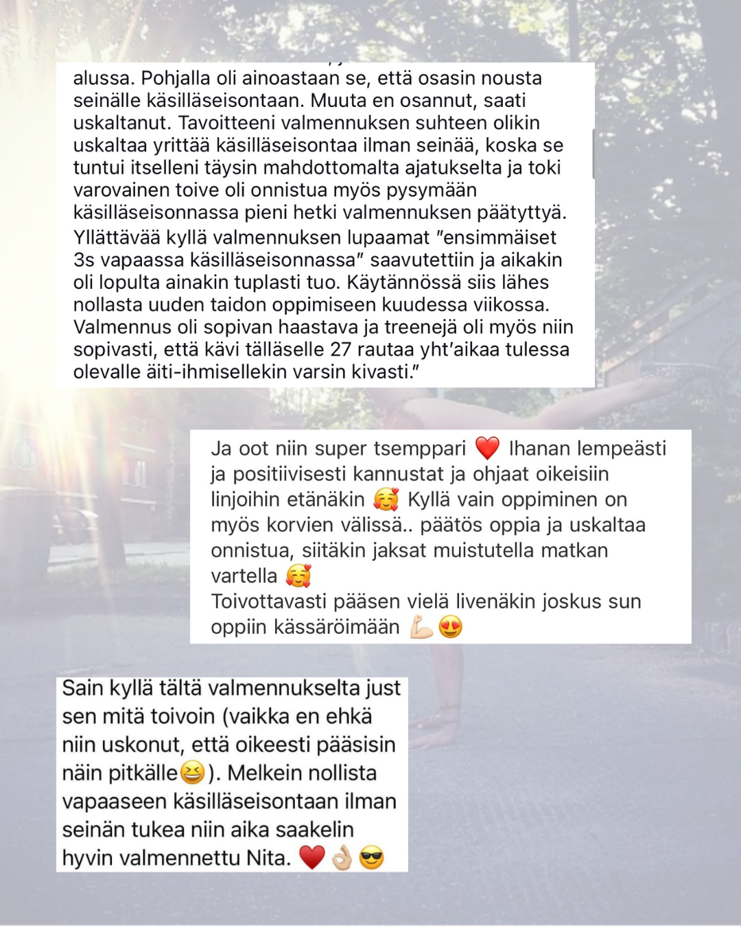 Moikka, oon Nitsku — käsilläseisonnan valmentaja ja liikkuvuuden opettaja.