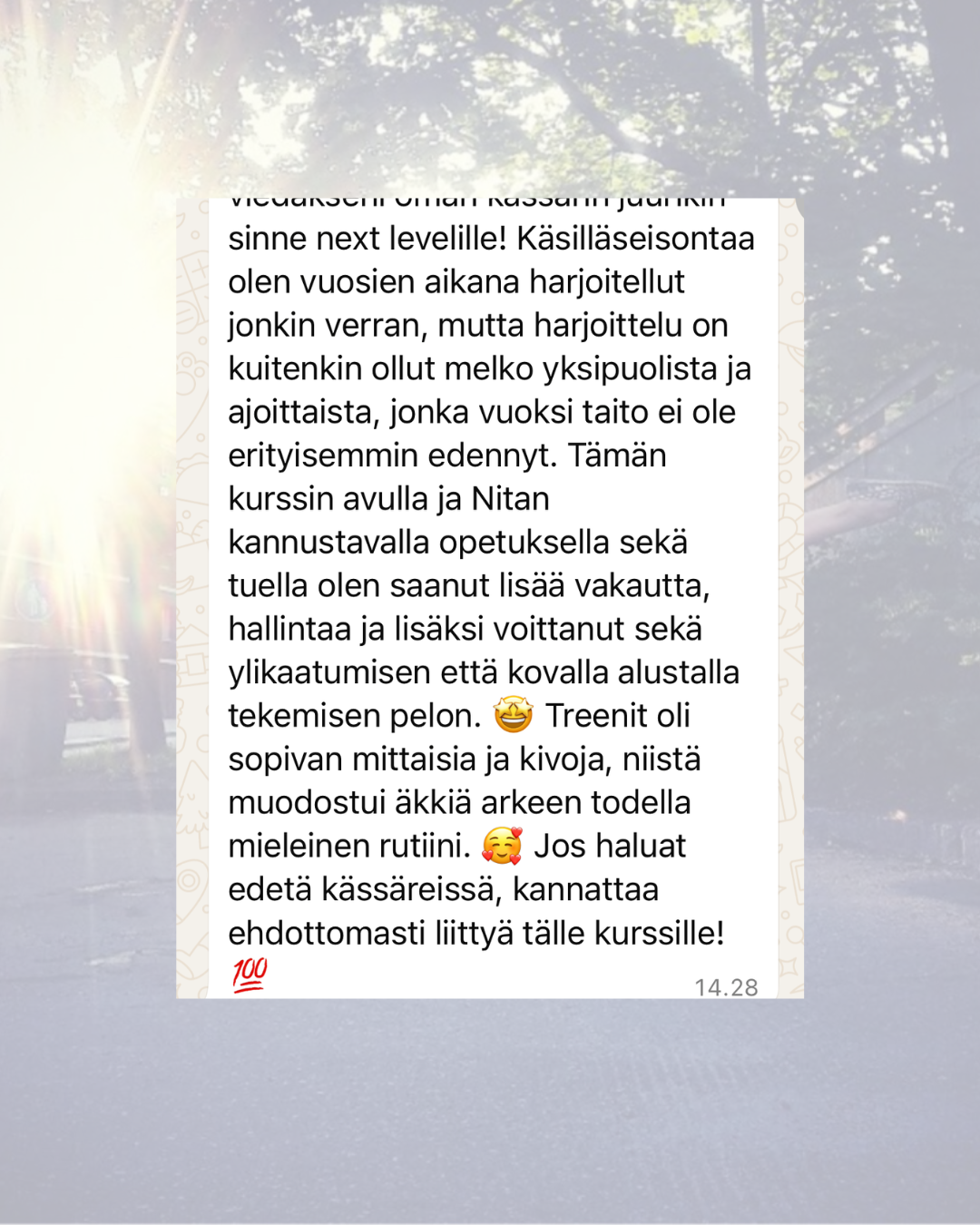 → vakaan, rauhallisen ja hallitun käsilläseisonnan alkuun— ilman arvailua, ilman pelkoa ja ilman tuntikausien treenimääriä.