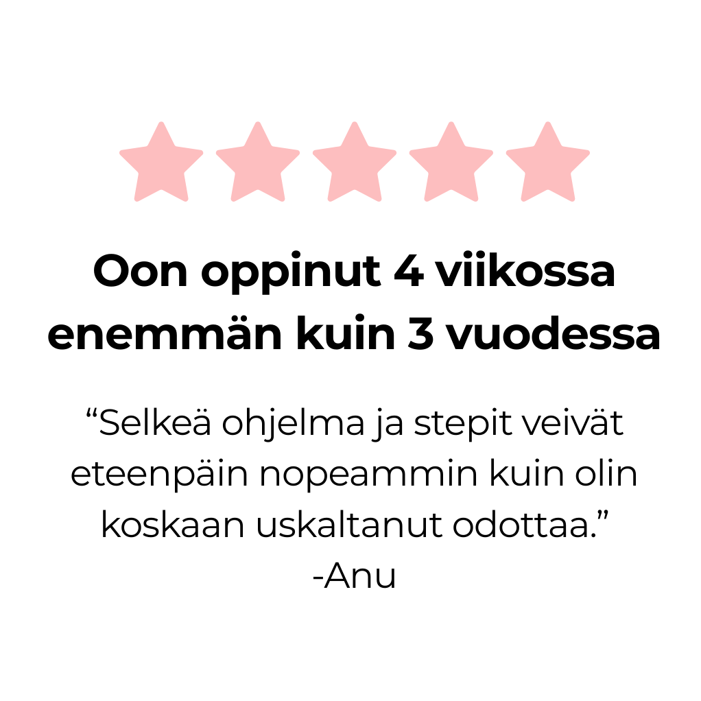 Vain täsmälliset vaiheet, jotka oikeasti vievät sinut eteenpäin.